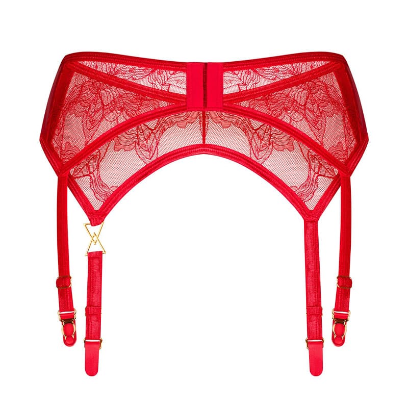 Tilføj et ekstra touch af luksus til dit lingeri med Obsessive Aliosa Hofteholder. Denne forførende røde hofteholderkombinerer delikate blonder med et skinnende wetlook-materiale, der smyger sig om hofterne for en elegant og sensuel pasform.
